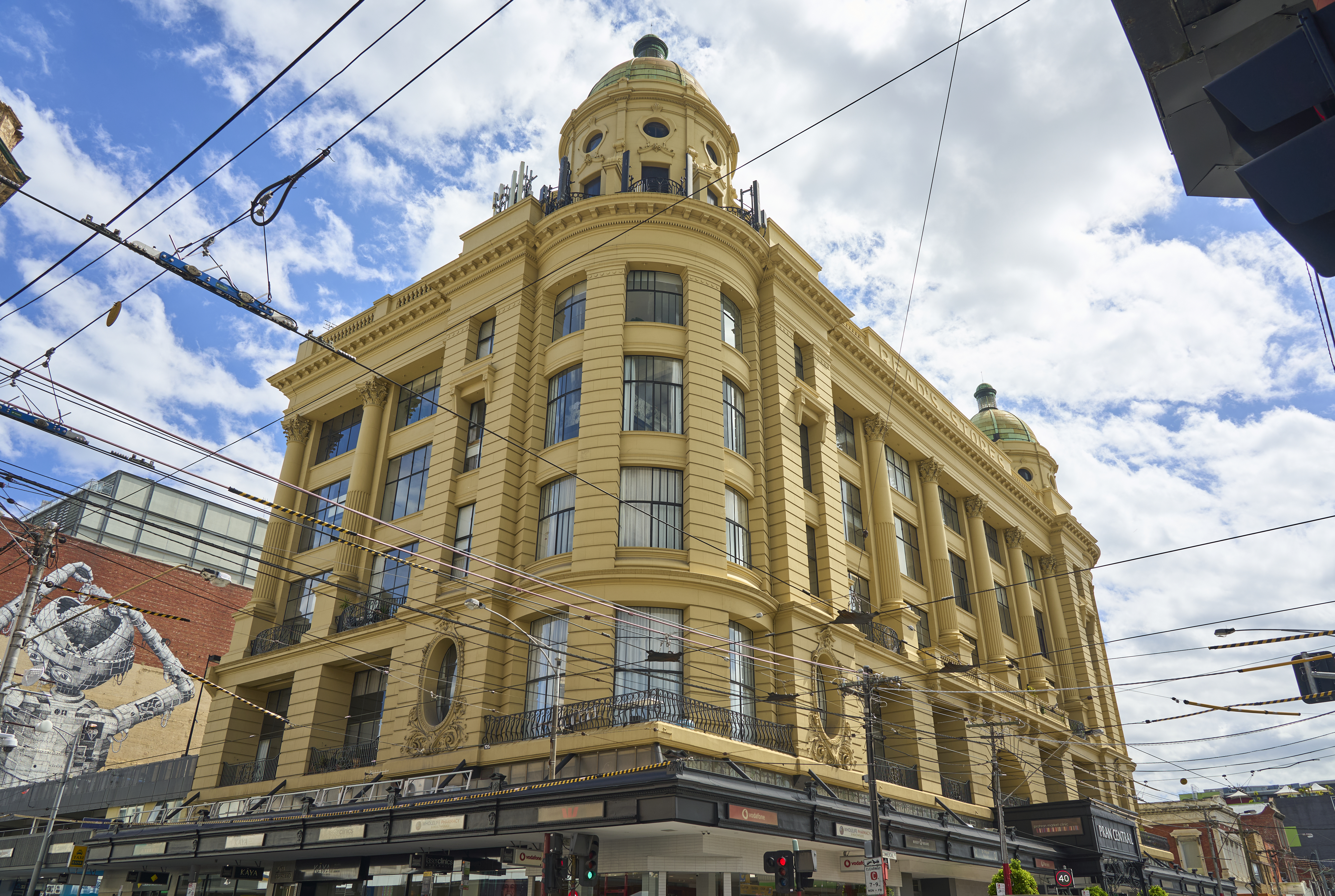 Architecturally, it is one of the few buildings to display the influence of the English Baroque Revival. Notable elements include the oval & circular windows, the overall rustication, ribbed green painted domes and an elaborate verandah showcasing Baroque architectural style. Corinthian columns and twin domed towers are not only unique but showcase the neo-classical revival of the 1910s and 20s, giving the building great prominence and providing landmarks that can be seen from great distances. Since 1910, Chapel Street has been the major shopping destination outside the CBD.